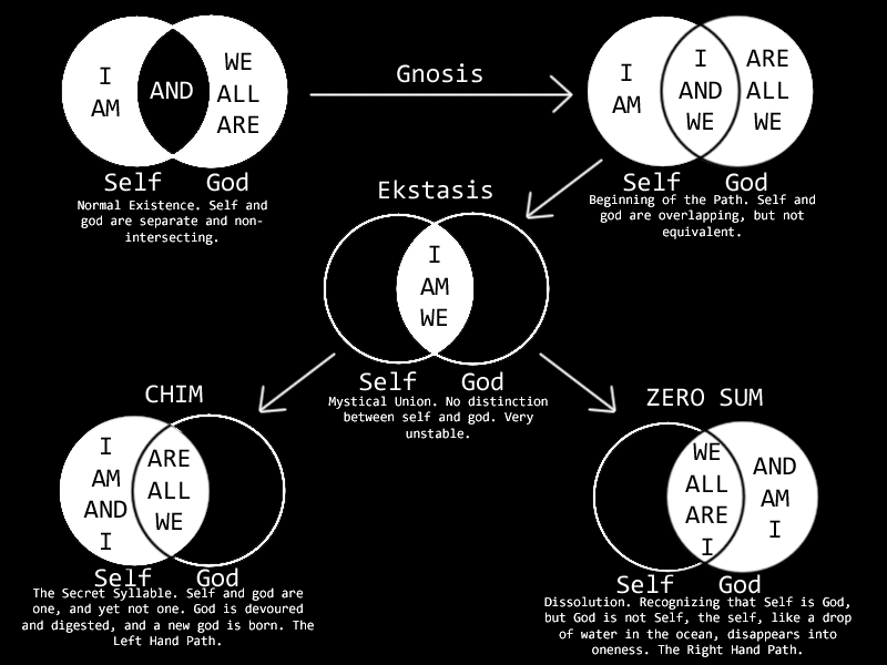 The “secret knowledge” of both gnosis and CHIM involves not only intellectual assent but true, deep understanding. For CHIM, a person cannot simply believe intellectually that reality does not exist; they must internalize that fact. When they do, it leads to one of two outcomes: vanishing into non-existence or ascending to a divine state beyond all constraints. This is a complex concept that I believe has been best expressed by a YouTube loremaster named “Fudgemuppet,” who gave the following analogy: