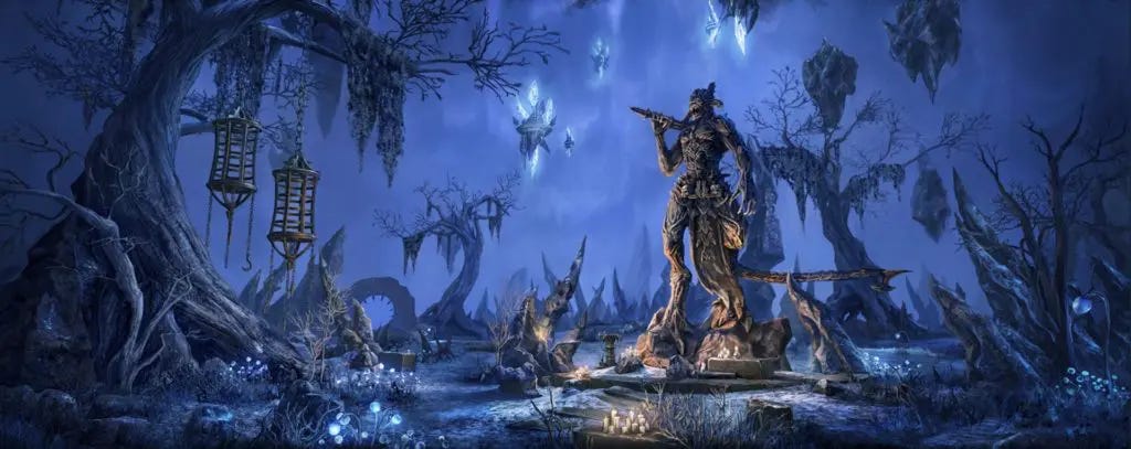 In-game, there is a lore book, The Monomyth (obviously a reference to Joseph Campbell) which describes the common, universal elements present within the religions of Tamriel. In it, we learn that there are only 2 gods present in every race’s pantheon, referred to as “archetypes.” These are the god of time, Akatosh, and the trickster god, Lorkhan, also called “the Missing God.” Lorkhan’s lore is riddled with complexity; he is said to have deceived the et'Ada, or original spirits, into the creation of the mortal plane, Mundus, depleting their power in the process.